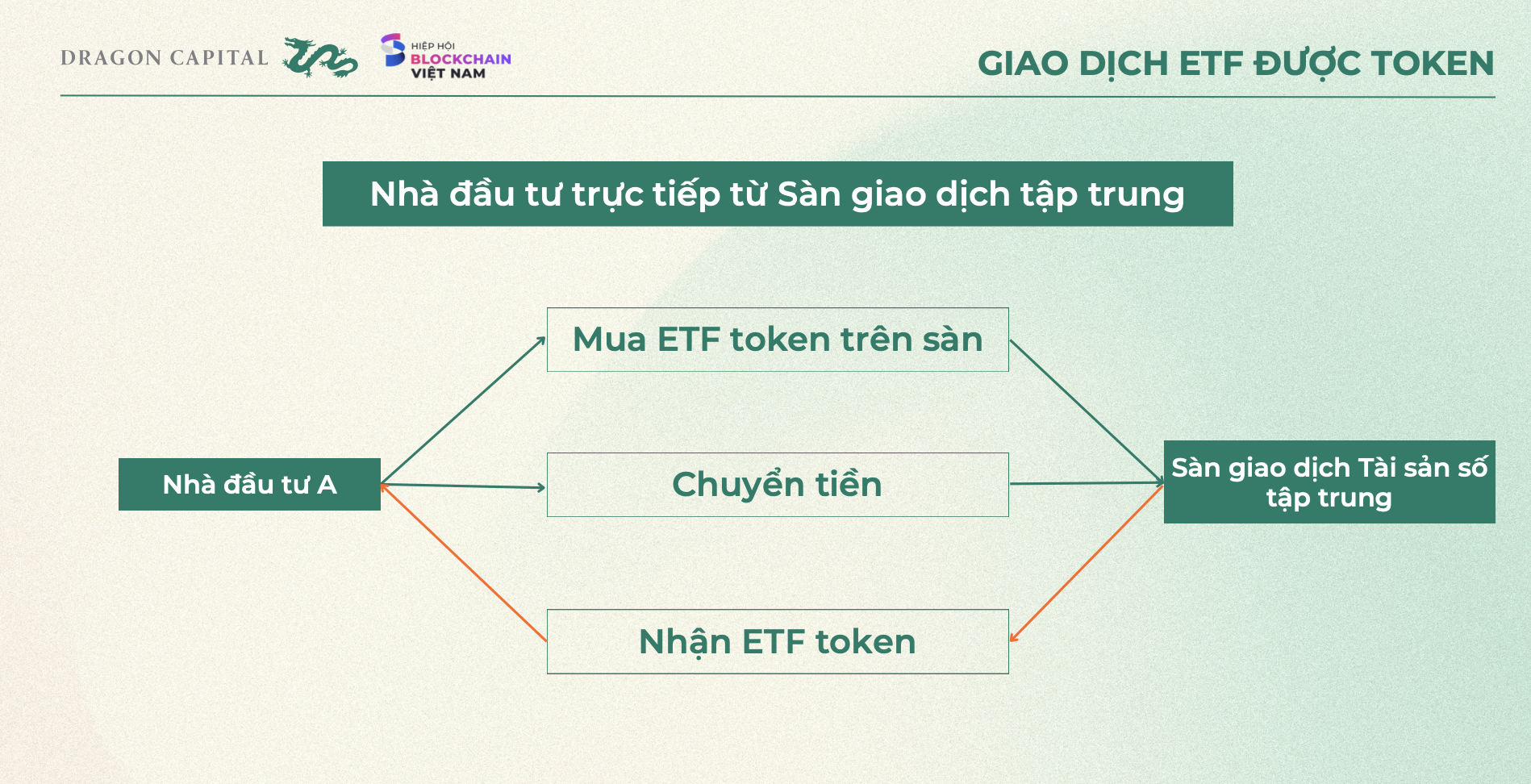Tại hội thảo “Chia sẻ kinh nghiệm quản lý và vận hành các sàn giao dịch tài sản mã hoá tập trung” do Hiệp hội Blockchain Việt Nam tổ chức sáng 27/3, Dragon Capital, công ty quản lý quỹ hàng đầu Việt Nam với quy mô danh mục khoảng 6 tỷ USD, công bố báo cáo “Token ETF xu hướng thế giới và triển vọng Việt Nam”, đề xuất việc Token hoá ETF tại Việt Nam.