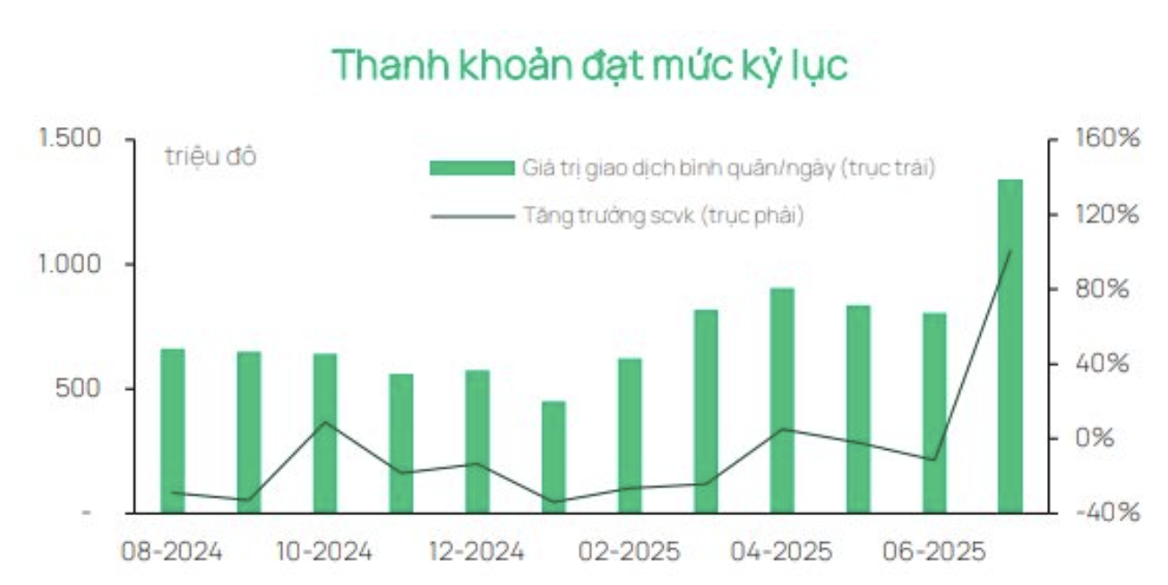 Bên cạnh đó, về tình hình vĩ mô tháng 7, kinh tế Việt Nam duy trì đà tăng trưởng mạnh mẽ, tiếp nối kết quả tích cực trong nửa đầu năm. Chính phủ đã nâng mục tiêu tăng trưởng GDP năm 2025 lên 8,3–8,5%, phản ánh niềm tin vào triển vọng kinh tế nửa cuối năm. Hoạt động sản xuất cải thiện, với Chỉ số Quản lý Mua hàng (PMI) tăng lên 52,4 – mức cao nhất trong gần một năm qua.