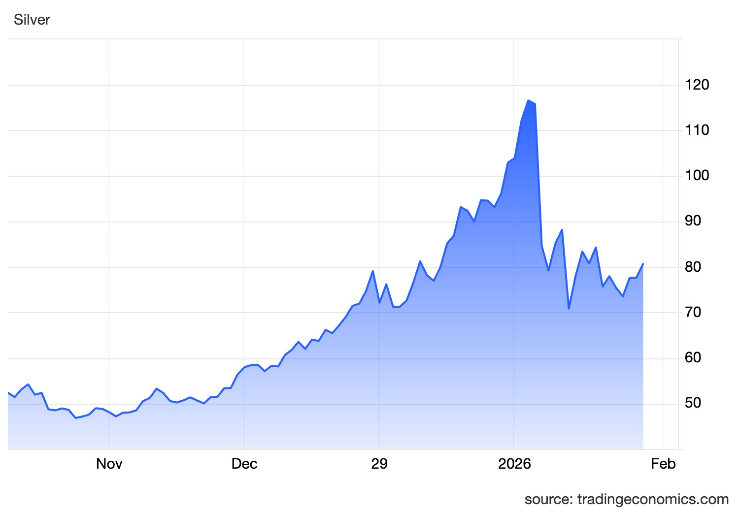 Động thái của SLV diễn ra trong bối cảnh giá bạc đang tìm kiếm điểm cân bằng sau cú rơi lịch sử hồi đầu tháng 2 và hiện đang dao động trong vùng 70-80 USD/oz. Giá bạc trên sàn COMEX (Mỹ) chiều 20/2 đang tiếp tục cho thấy dấu hiệu hồi phục, vượt ngưỡng 80,5 USD/oz (tăng gần 4% so với phiên trước). Song, so với mức đỉnh từng chạm đến trên 120 USD/oz, giá bạc hiện thấp hơn khoảng 30-40%.
