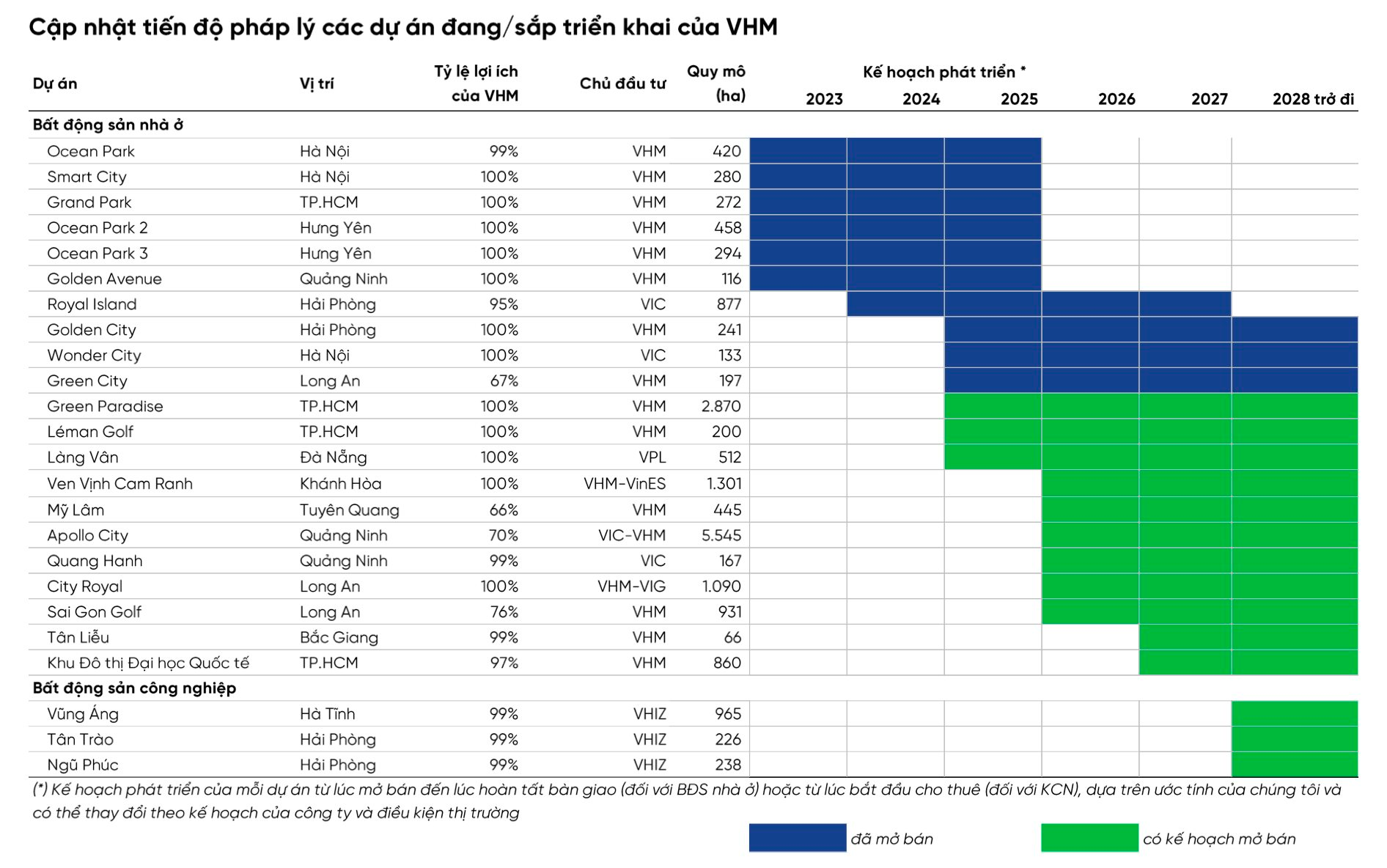 Bên cạnh đó, VPBankS cho rằng việc tham gia các dự án hạ tầng trọng điểm quốc gia có thể mang lại lợi thế hỗ trợ Vingroup và Vinhomes trong thúc đẩy pháp lý dự án cũng như mở rộng quỹ đất ở các vị trí chiến lược.
