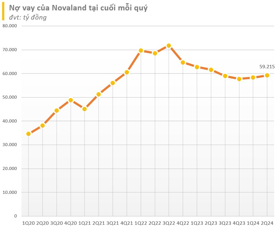 Theo BCTC hợp nhất bán niên của CTCP Tập đoàn đầu tư Địa ốc No Va (Novaland, mã chứng khoán: NVL), công ty này ghi nhận 59.215 tỷ đồng nợ vay tài chính.