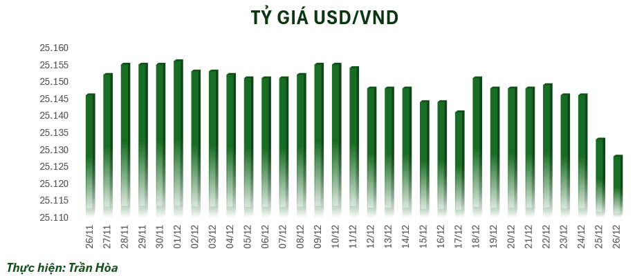 Vào sáng nay, tỷ giá trung tâm đang được niêm yết ở mốc 25.128 VND/USD, giảm 5 đồng so với sáng qua. Tại một số ngân hàng thương mại, giá USD được điều chỉnh giảm.