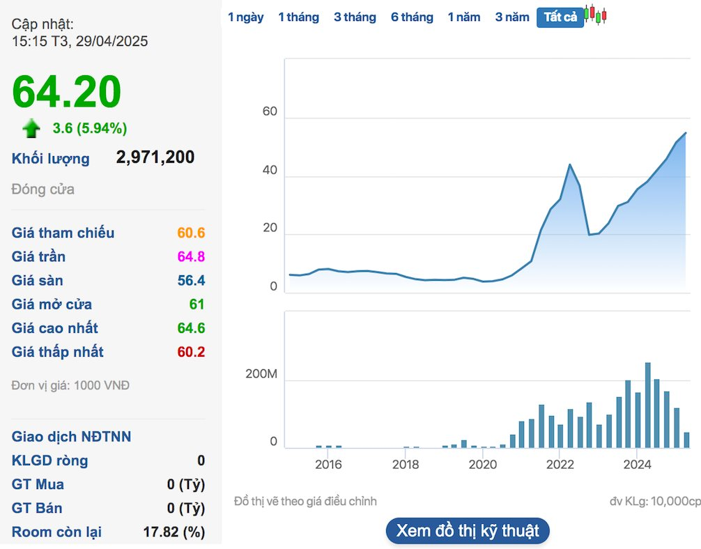 Trên sàn chứng khoán, cổ phiếu HAH vừa thiết lập cột mốc lịch sử mới khi thị giá lần đầu tiên chạm mốc 64.200 đồng/cp, vốn hoá thị trường theo đó tăng lên hơn 8.300 tỷ đồng.