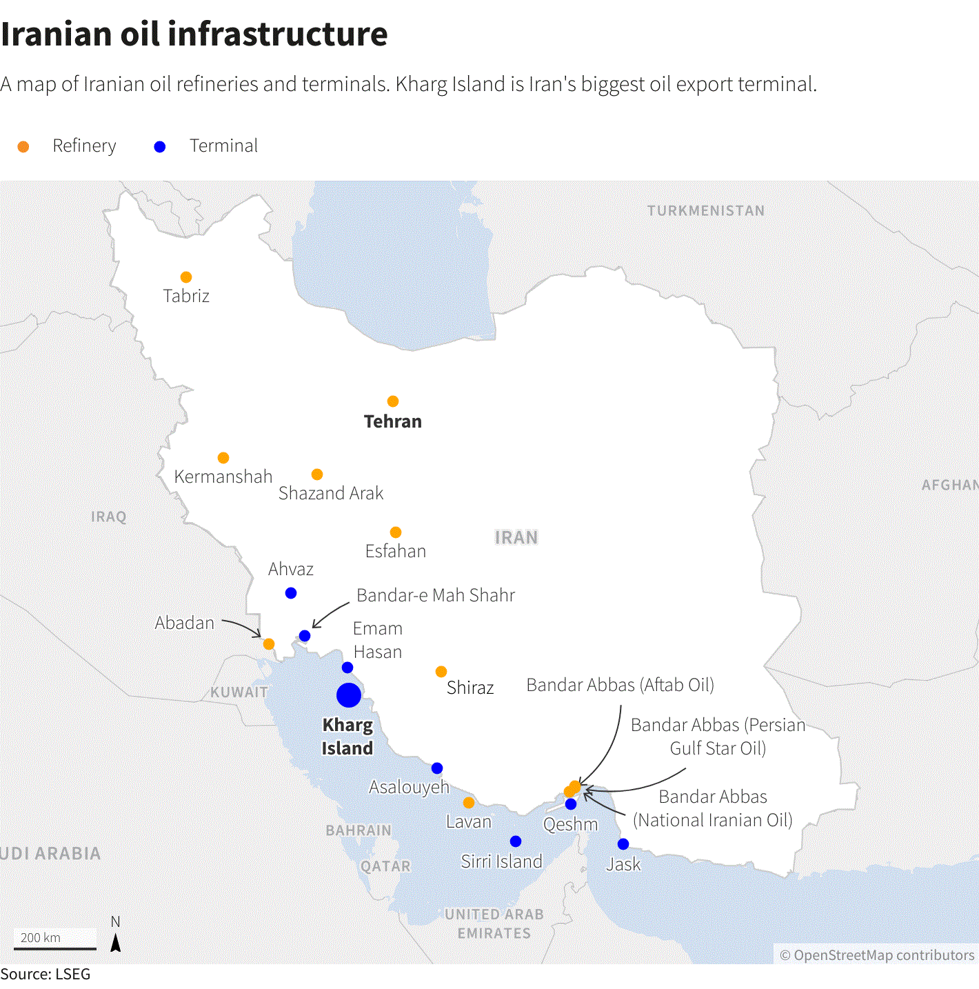 Iran, một thành viên của OPEC, là một thành phần quan trọng trên thị trường dầu mỏ toàn cầu với sản lượng khoảng 3,2 triệu thùng mỗi ngày. Ước tính có tới 4% nguồn cung toàn cầu có thể gặp rủi ro nếu Israel nhắm vào các cơ sở dầu mỏ của Iran.
