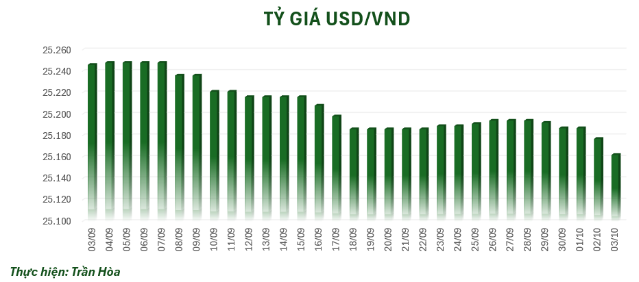 Vào sáng nay, tỷ giá trung tâm đang được niêm yết ở mốc 25.162 VND/USD, giảm 15 đồng so với phiên liền trước. Tại một số ngân hàng thương mại, giá USD cũng giảm theo tỷ giá trung tâm.