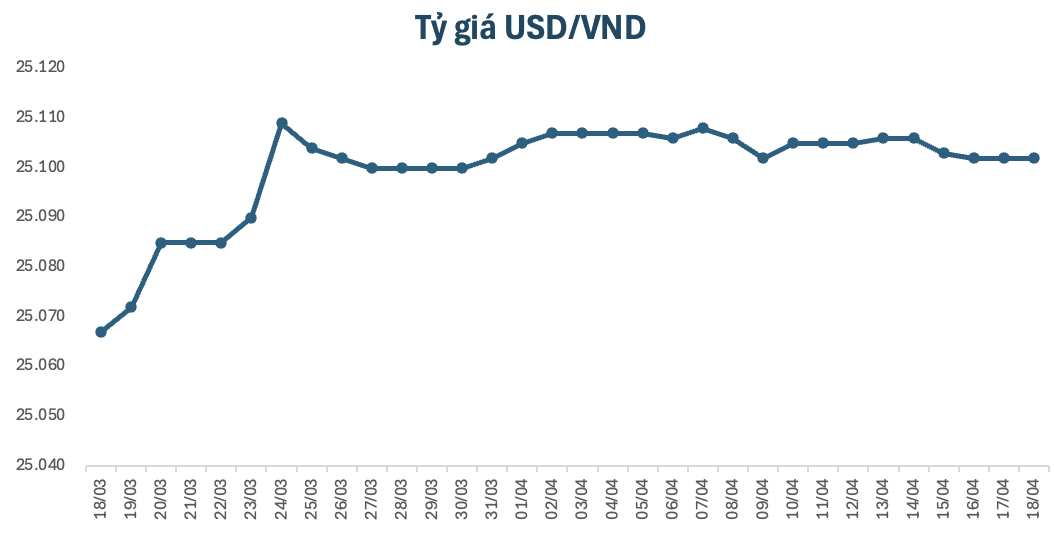 Tỷ giá USD tạm đứng ở mức 25.102 VND/USD