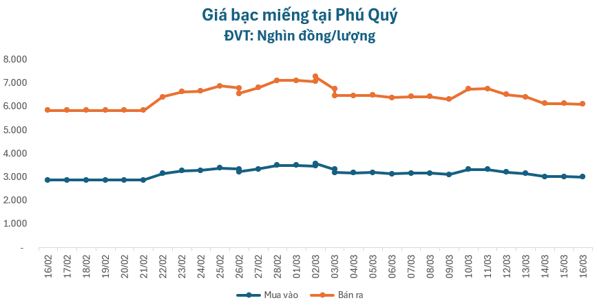 Tại Doji, giá bạc miếng tăng 14.000 đồng/lượng chiều mua và giảm 16.000 đồng/lượng chiều bán, lùi về mức 3.016.000 – 3.109.000 đồng/lượng (mua – bán).