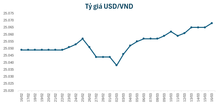 Vào sáng nay, tỷ giá trung tâm đứng ở mức 25.068 VND/USD, tăng 3 đồng so với giá cuối tuần trước. Tại một số ngân hàng thương mại, giá USD hầu hết cũng được điều chỉnh tăng 3 đồng ở chiều bán.