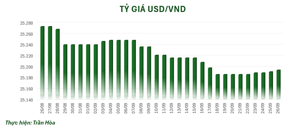 Hôm nay, tỷ giá trung tâm đang được niêm yết ở mốc 25.194 VND/USD, tăng 3 đồng so với phiên liền trước. Tại một số ngân hàng thương mại, giá USD cũng biến động nhẹ so với hôm qua.