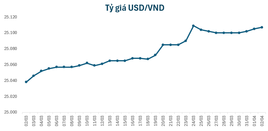 Vào sáng nay, tỷ giá trung tâm giữ ở mức 25.107 VND/USD, tăng 2 đồng so với giá khảo sát sáng qua. Tại một số ngân hàng thương mại, giá USD hầu hết đều được điều chỉnh tăng 2 đồng ở chiều bán.