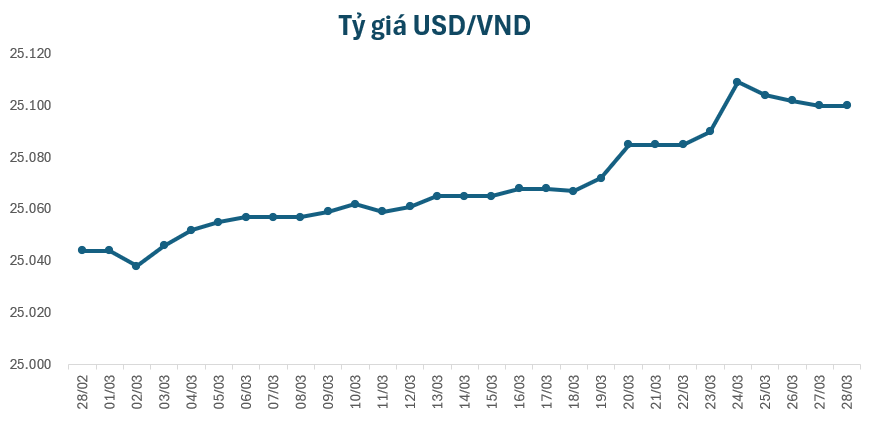 Tỷ giá USD tạm đứng ở mức 25.100 VND/USD