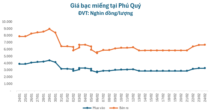 Giá bạc tiếp đà tăng nhẹ, tại Phú Quý, giá bạc miếng niêm yết ở mức 3.277.000 – 3.378.000 đồng/lượng, tăng 10.000 đồng ở cả chiều mua và chiều bán so với sáng qua.