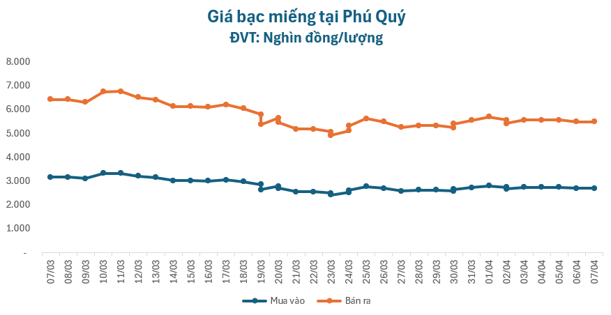 Giá bạc đảo chiều đi lên, tại Phú Quý, giá bạc miếng niêm yết ở mức 2.723.000 – 2.807.000 đồng/lượng, tăng 22.000 đồng ở cả chiều mua và chiều bán so với giá khảo sát sáng qua.