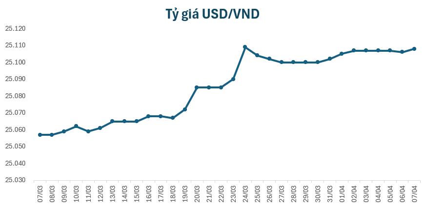 Vào sáng nay, tỷ giá trung tâm giữ ở mức 25.108 VND/USD, tăng 2 đồng so với giá sáng qua. Tại một số ngân hàng thương mại, giá USD hầu như cũng được điều chỉnh tăng.