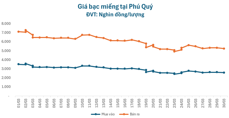 Tính từ đầu tháng 3 đến nay, giá bạc đã giảm tới 25.000.000 đồng/kg.