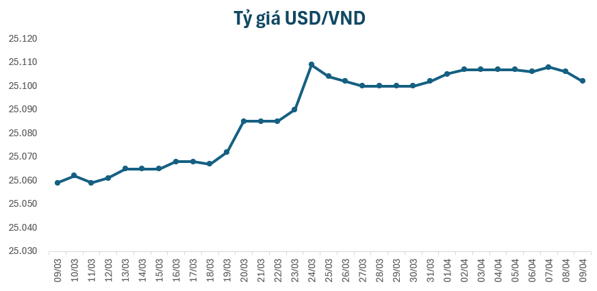 Vào sáng nay, tỷ giá trung tâm giữ ở mức 25.102 VND/USD, giảm 4 đồng so với giá sáng qua. Tại một số ngân hàng thương mại, giá USD diễn biến trái chiều.