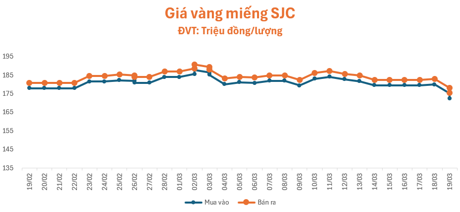 Tính từ đầu tháng 3 đến nay, giá vàng giảm khoảng 12 triệu đồng mỗi lượng.