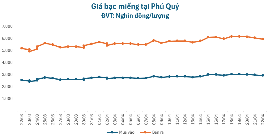 Tại Doji, giá bạc miếng giảm 53.000 đồng/lượng ở chiều mua và giảm 55.000 đồng ở chiều bán, đạt mức 2.936.000 – 3.036.000 đồng/lượng (mua – bán).