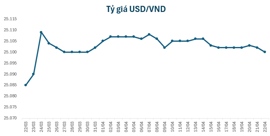 Vào sáng nay, tỷ giá trung tâm giữ ở mức 25.100 VND/USD, giảm 2 đồng so với giá giá khảo sát sáng qua. Tại một số ngân hàng thương mại, giá USD hầu hết cũng được điều chỉnh giảm.