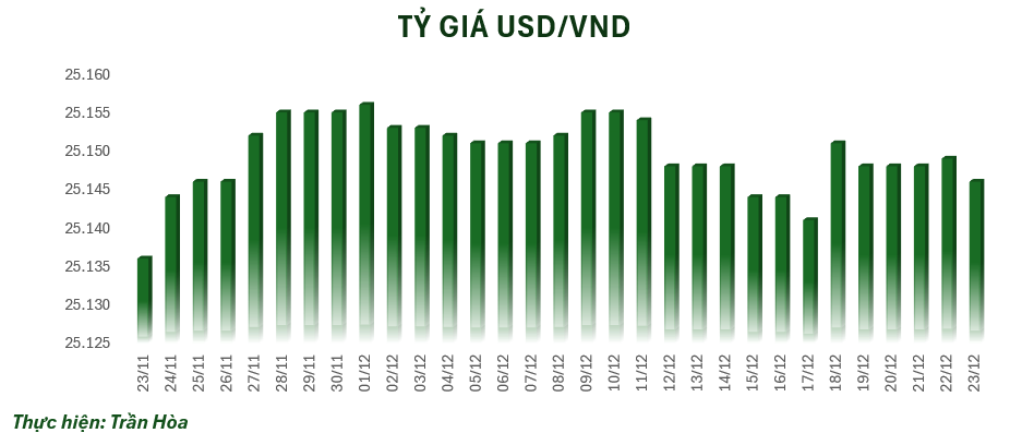 Tỷ giá USD quay đầu giảm, niêm yết ở mốc 25.146 VND/USD, giảm 3 đồng so với sáng qua. Tại một số ngân hàng thương mại, giá USD cũng được điều chỉnh giảm 3 đồng ở chiều bán theo tỷ giá trung tâm.