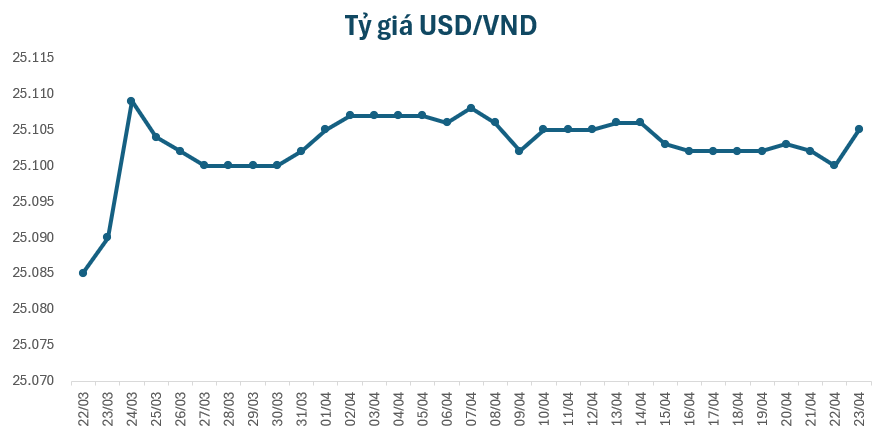 Vào sáng nay, tỷ giá trung tâm giữ ở mức 25.105 VND/USD, tăng 5 đồng so với giá giá khảo sát sáng qua. Tại một số ngân hàng thương mại, giá USD hầu hết cũng được điều chỉnh tăng.