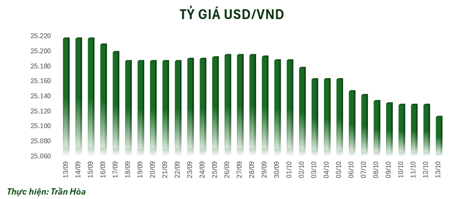 Vào sáng nay, tỷ giá trung tâm đang được niêm yết ở mốc 25.112 VND/USD, giảm 16 đồng so với mốc đóng cửa tuần trước. Tại một số ngân hàng thương mại, giá USD biến động theo tỷ giá trung tâm đồng loạt giảm nhẹ.