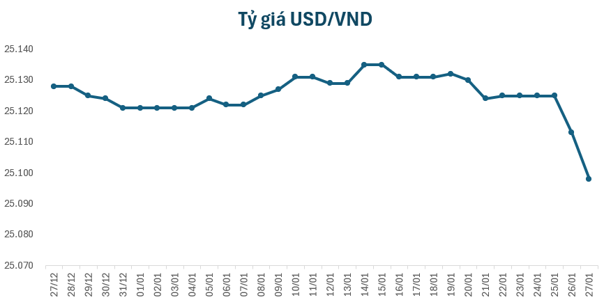 Vào sáng nay, tỷ giá trung tâm đang giao dich ở mốc 25.098 VND/USD, giảm 15 đồng so với giá khảo sát sáng qua. Tại một số ngân hàng thương mại, giá USD hầu hết cũng được điều chỉnh giảm theo tỷ giá trung tâm.