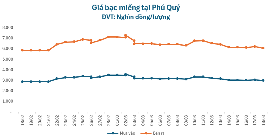 Tính từ đầu tháng 3 đến nay, giá bạc đã giảm hơn 14.000.000 đồng/kg.