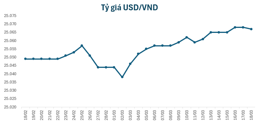 Vào sáng nay, tỷ giá trung tâm đứng ở mức 25.067 VND/USD, giảm 1 đồng so với giá khảo sát sáng qua. Tại một số ngân hàng thương mại, giá USD diễn biến trái chiều.