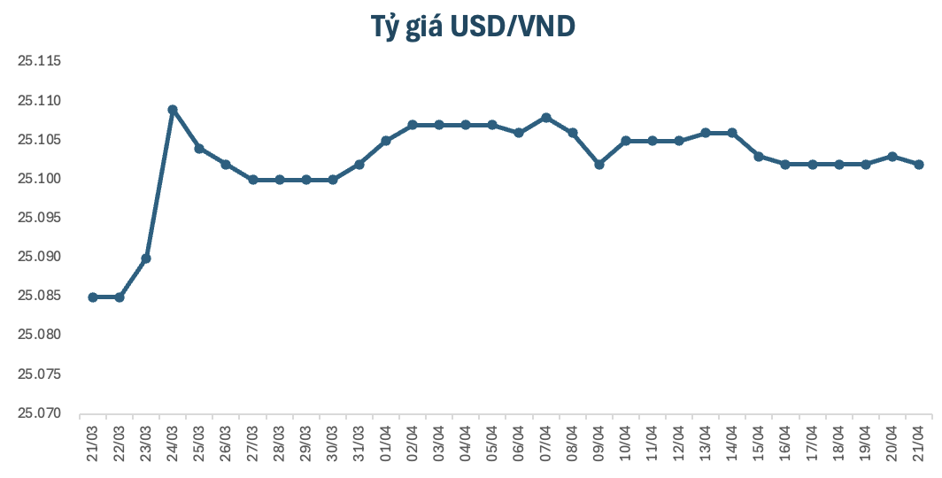 Vào sáng nay, tỷ giá trung tâm giữ ở mức 25.101 VND/USD, giảm 1 đồng so với giá giá khảo sát sáng qua. Tại một số ngân hàng thương mại, giá USD hầu hết cũng được điều chỉnh đi xuống.