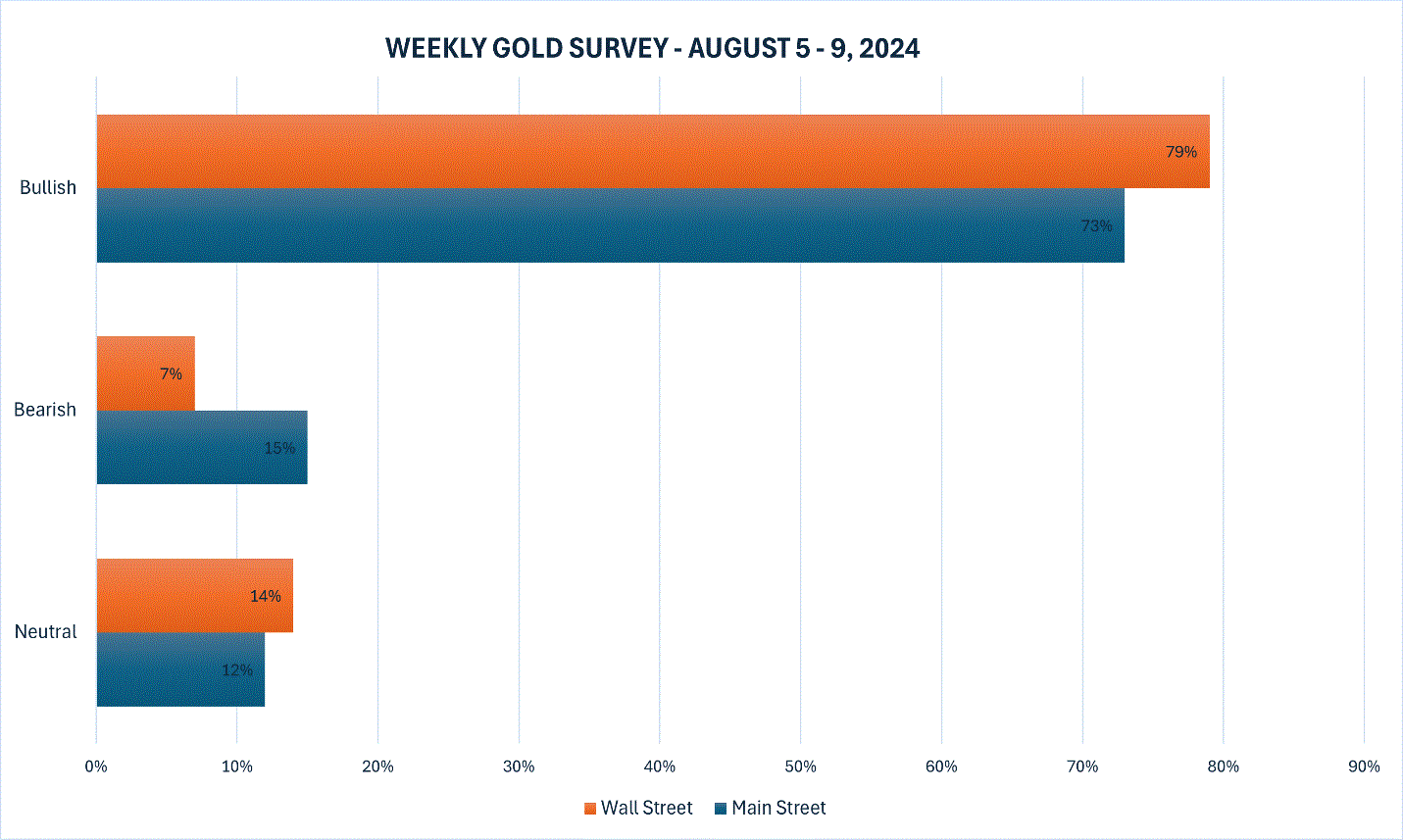Kết quả khảo sát của Kitco News cho thấy, trong số 14 nhà phân tích Phố Wall thì có 11 người (79%) dự báo giá vàng sẽ tăng trong tuần tới và chỉ có một người (7%) dự đoán giá sẽ giảm. 2 nhà phân tích còn lại, hay 14%, cho rằng vàng có xu hướng đi ngang trong tuần tới.