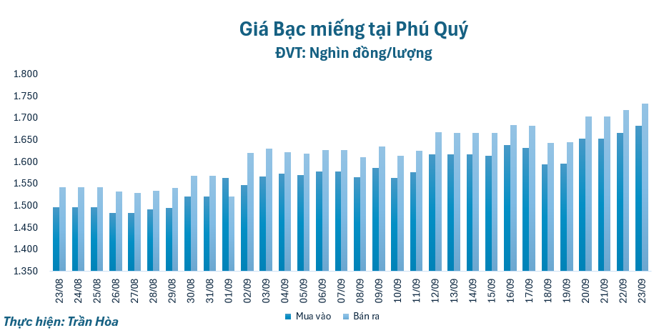 So với đầu tháng 9, giá bạc trong nước đã tăng tổng cộng 155.000 đồng/lượng, tương đương gần 10%.