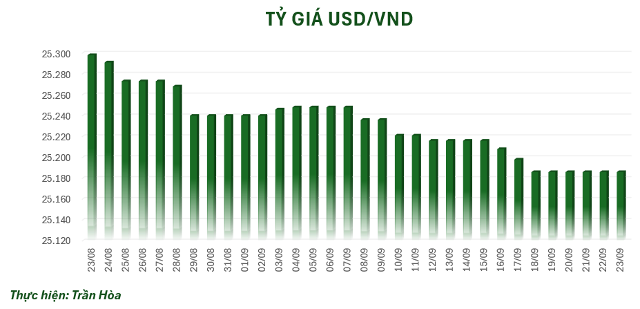 Hôm nay, tỷ giá trung tâm được niêm yết ở mốc 25.189 VND/USD, tăng nhẹ 3 đồng so với phiên liền trước. Tại một số ngân hàng thương mại, giá USD cũng không biến động nhiều.