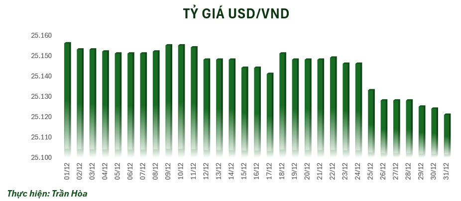 Vào sáng nay, tỷ giá trung tâm chốt phiên tuần ở mốc 25.121 VND/USD, giảm 3 đồng so với sáng qua. Tại một số ngân hàng thương mại, giá USD cũng được điều chỉnh giảm.