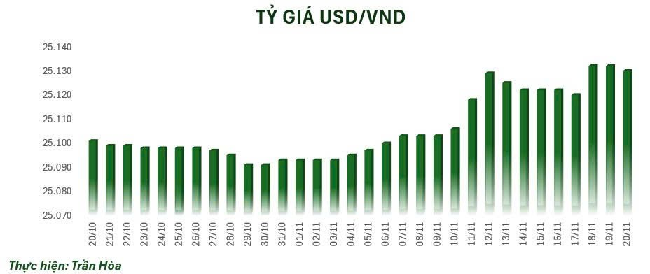 Vào sáng nay, tỷ giá trung tâm đang được niêm yết ở mốc 25.130 VND/USD, giảm 2 đồng so với mốc khảo sát sáng qua. Tại một số ngân hàng thương mại, giá USD cũng đồng loạt giảm 2 đồng theo tỷ giá trung tâm.