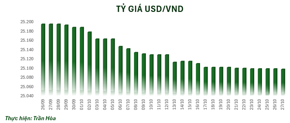 Vào sáng nay, tỷ giá trung tâm được niêm yết ở mốc 25.097 VND/USD, giảm 1 đồng so với mốc chốt phiên tuần trước. Tại một số ngân hàng thương mại, giá USD cũng được điều chỉnh giảm theo tỷ giá trung tâm.