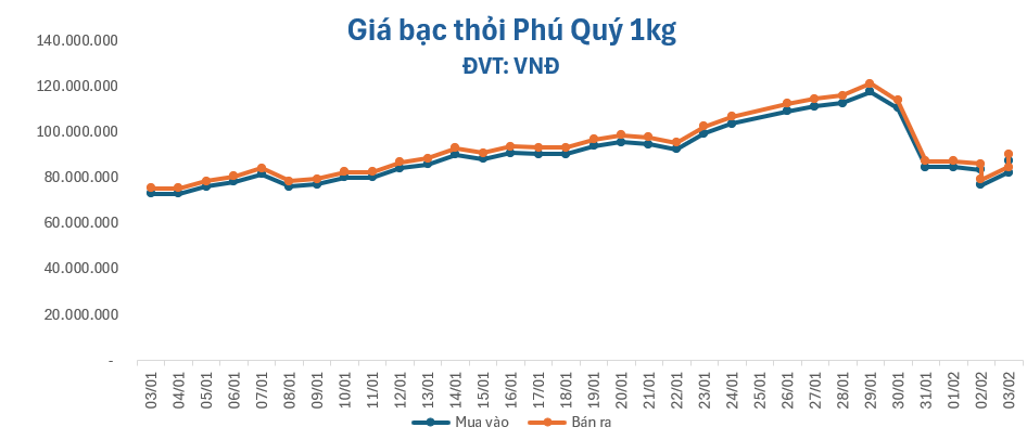 Với việc SLV bắt đáy, giá bạc đang hồi phục trở lại trên vùng 80 USD/ounce. Mức giá này vẫn còn thấp hơn nhiều so với đỉnh, có thời điểm vượt 120 USD vào cuối tháng 1. Tuy nhiên, so với một năm trước, giá bạc vẫn cao hơn khoảng 150%.