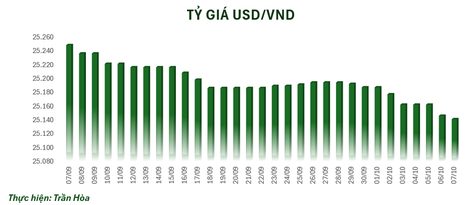 Vào sáng nay, tỷ giá trung tâm đang được niêm yết ở mốc 25.141 VND/USD, giảm 5 đồng so với phiên liền trước. Tại một số ngân hàng thương mại, giá USD cũng đồng loạt giảm theo tỷ giá trung tâm.