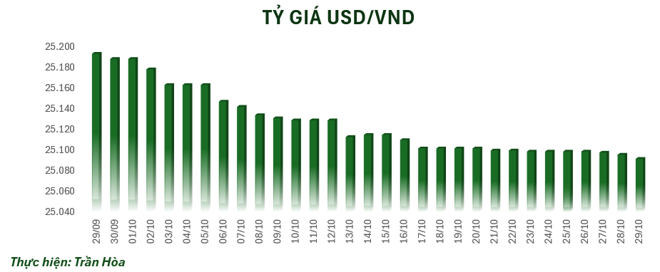 Vào sáng nay, tỷ giá trung tâm đang được niêm yết ở mốc 25.091 VND/USD, giảm 4 đồng so với phiên sáng qua. Tại một số ngân hàng thương mại, giá USD cũng được điều chỉnh nhẹ.