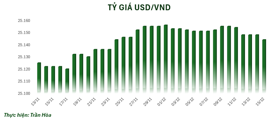 Vào sáng nay, tỷ giá trung tâm đang được niêm yết ở mốc 25.144 VND/USD, giảm 4 đồng so với mốc chốt phiên tuần trước. Tại một số ngân hàng thương mại, giá USD cũng giảm 4 đồng ở chiều bán ra theo tỷ giá trung tâm.