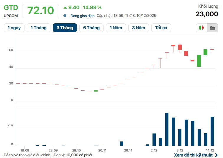 Cụ thể, 6,38 triệu cổ phần GTD được đưa ra chào bán với giá khởi điểm 20.500 đồng/cổ phần. Phiên đấu giá thu hút sự quan tâm của 15 nhà đầu tư, tất cả đều là cá nhân.