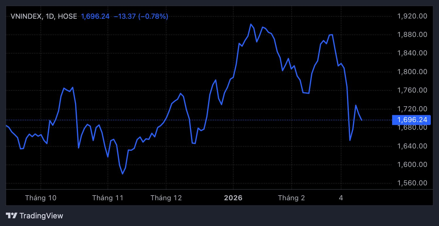 VN-Index đã lao dốc hơn 100 điểm ngay trong phiên giao dịch đầu tuần, xóa sạch toàn bộ mức tăng tích lũy từ cuối năm trước. Dù thị trường sau đó ghi nhận hai phiên hồi phục kỹ thuật, song chỉ số nhanh chóng điều chỉnh để tuột mất mốc 1.700 điểm. Đáng chú ý, thanh khoản suy giảm cho thấy tâm lý nhà đầu tư vẫn khá thận trọng sau nhịp điều chỉnh mạnh.