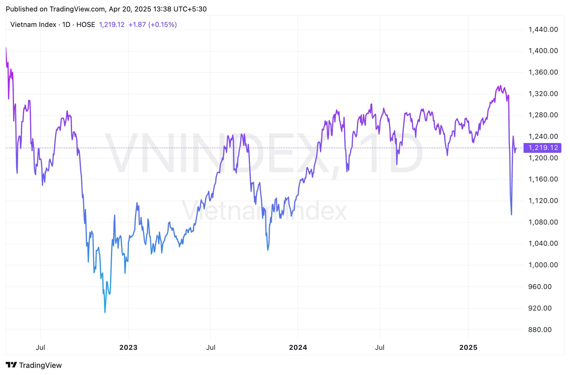 Trong nước, sau cú “sập” bởi thông tin thuế quan, thị trường hồi phục nhanh, nhưng theo ông Huy đây là nhịp hồi nhanh sau quãng giảm sâu, chưa có nền tích lũy và cũng vẫn còn rất nhiều bất định trong bối cảnh. Xu hướng dài hạn và ngắn hạn hiện tại vẫn nghiêng về giảm điểm. Sau cú hồi, thị trường đang tái tích lũy ở vùng 1.200-1.240 điểm và trong trường hợp tích cực nhất, thị trường sẽ giữ trận được ở vùng này để cân bằng tâm lý.