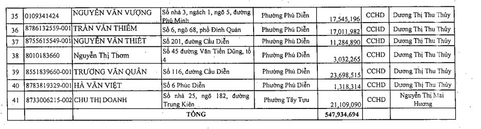 Thuế cơ sở 9 Thành phố Hà Nội thực hiện công khai thông 41 người nộp thuế còn nợ tiền thuế và các khoản thu khác thuộc ngân sách nhà nước đến thời điểm khóa sổ 12/01/2026 với số tiền khoảng 548 triệu đồng.