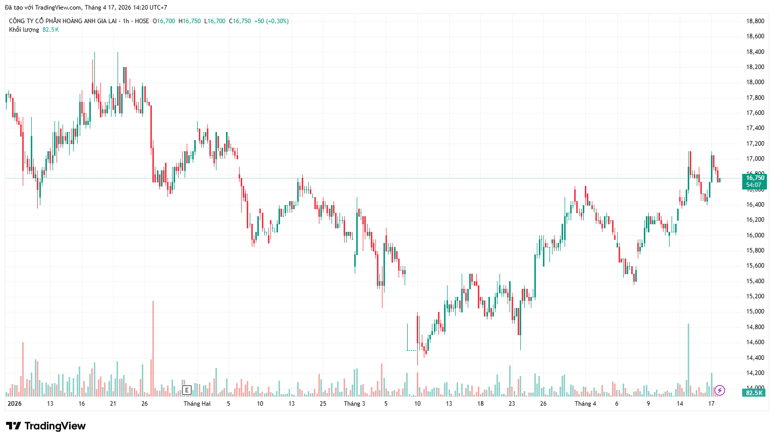 Kết thúc phiên giao dịch ngày 16/4, giá cổ phiếu HAG ở mức 16.700 đồng/cổ phiếu, giảm nhẹ gần 1% so với đầu năm.