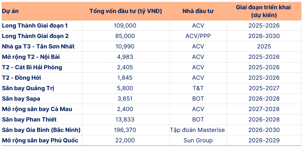 Nhìn chung, theo đánh giá của Chứng khoán SHS, những khoản đầu tư quy mô lớn vào hạ tầng hàng không sẽ tạo bước nhảy vọt về năng lực vận tải cho Việt Nam, đồng thời mở ra biên lợi nhuận mới cho các doanh nghiệp hành không và chuỗi dịch vụ hàng không phụ trợ.