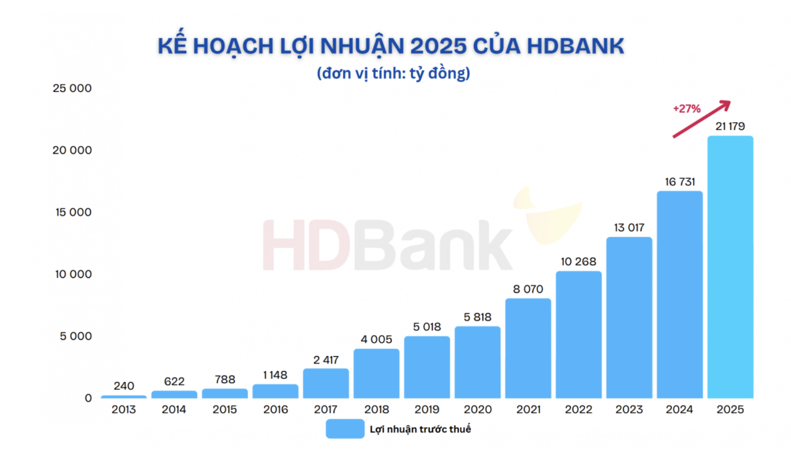 MBS cho rằng, với định hướng nới lỏng từ Ngân hàng Nhà nước (NHNN) nhằm hỗ trợ tối đa cho mục tiêu tăng trưởng GDP 8%, TTTD toàn ngành ngân hàng sẽ đạt trên 17% trong năm 2025, trong đó nhóm NHTMCP được kỳ vọng sẽ có mức tăng mạnh hơn so với nhóm NHTM quốc doanh (NHTMQD). HDBank cùng với VPBank và MB nằm trong nhóm NHTMCP được cấp hạn mức tín dụng cao hơn so với các ngân hàng khác nhờ nhận chuyển giao ngân hàng 0 đồng.