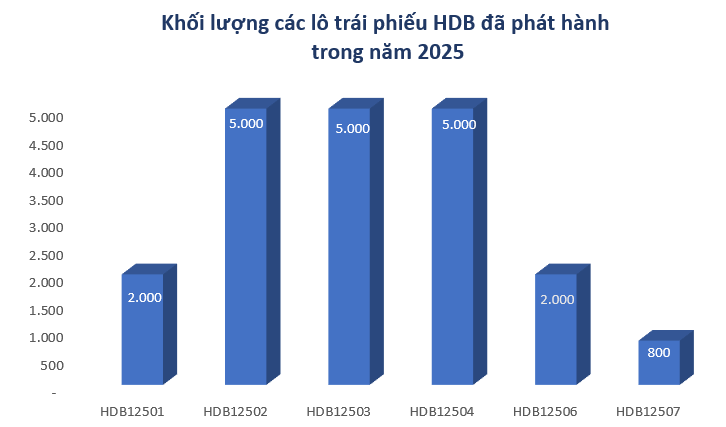 Từ đầu năm 2025, ngân hàng đã phát hành 6 lô trái phiếu có kỳ hạn 2–8 năm, lãi suất dao động từ 5,5% - 7,47%/năm, tổng giá trị huy động đạt 19.800 tỷ đồng.