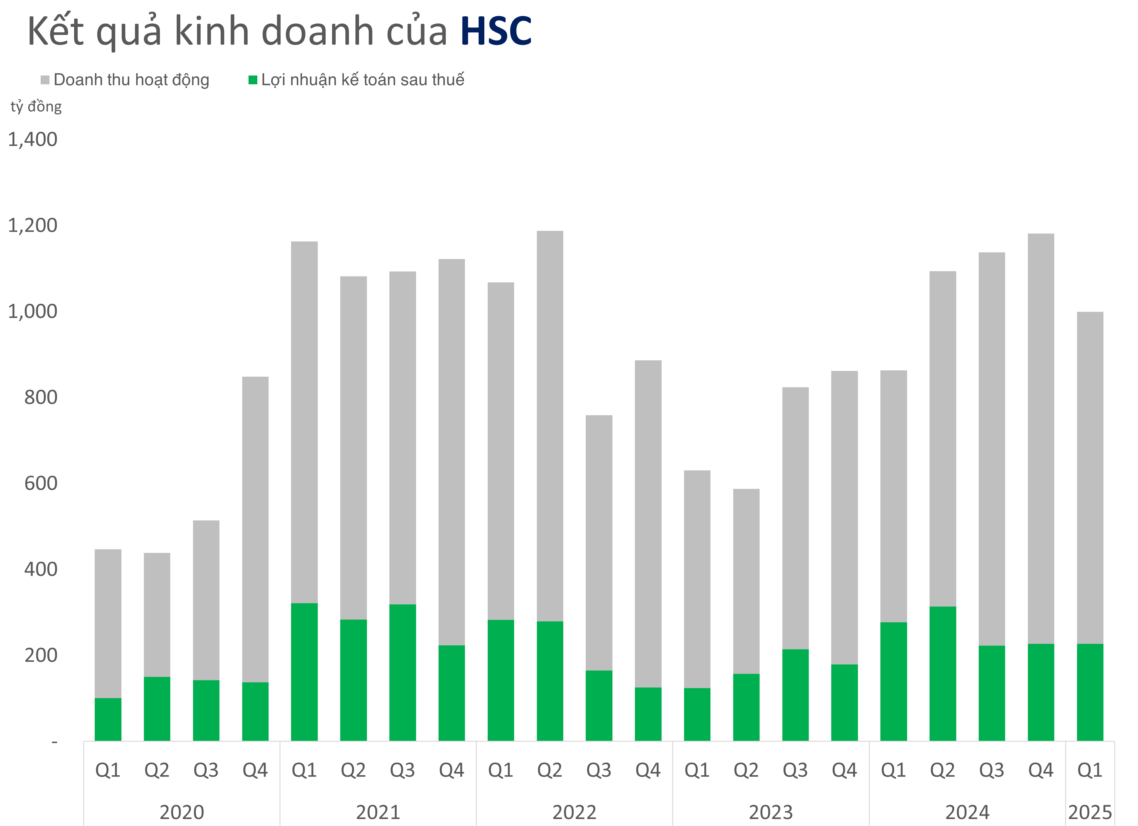 Trong quý I/2025, HSC ghi nhận lợi nhuận trước thuế đạt 283 tỷ đồng, giảm 18% so với cùng kỳ năm 2024. Thu nhập trên một cổ phiếu (EPS) trong kỳ đạt 315 đồng/cổ phiếu.