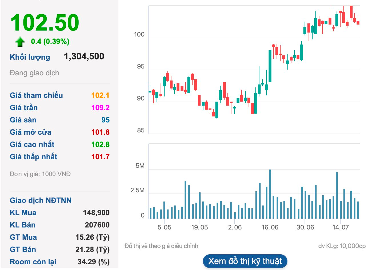 Trên thị trường chứng khoán, phiên giao dịch ngày 22/7, cổ phiếu DGC tăng lên mức 102.500 đồng/cp. Vốn hoá thị trường đạt gần 39.000 tỷ đồng.